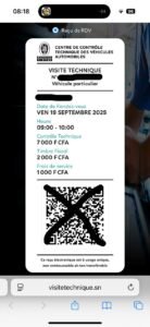 La prise de rendez-vous est obligatoire au 88 628 10 10 (coût : 248 FCFA). Le centre, situé sur la Route du Front de Terre (ex-TP SOM, Dakar), accueille les automobilistes du lundi au vendredi de 7h à 20h, et le samedi jusqu’à 14h.